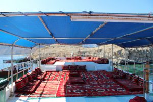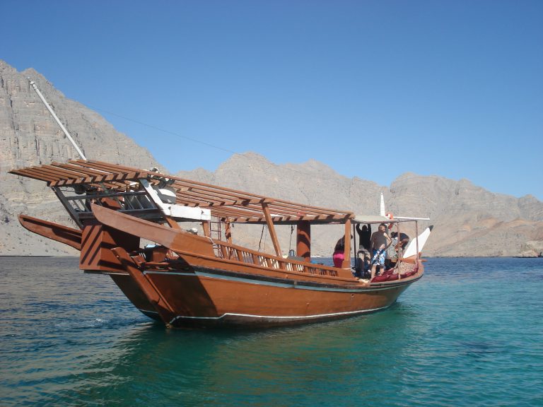 L’excursion incontournable de Khasab est le Dhow Cruise, une balade en mer à bord d’un bateau appelé Dhow, un bateau traditionnel omanais. Vous avez le choix entre en excursion pour une journée complète, une demi-journée, de nuit ou même pour une excursion d’une journée et une nuit à bord de ces jolis bateaux.